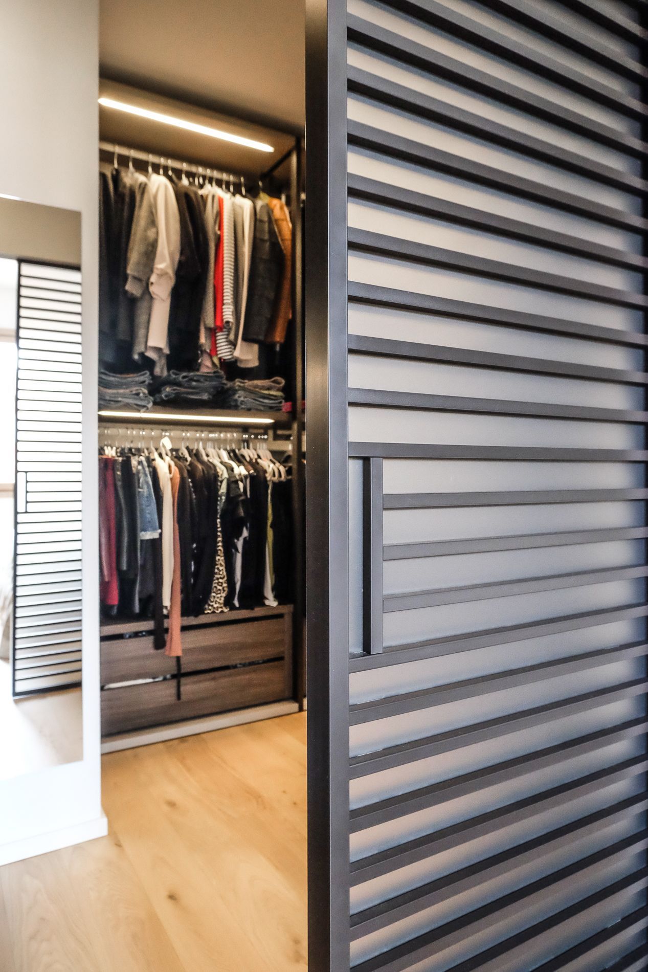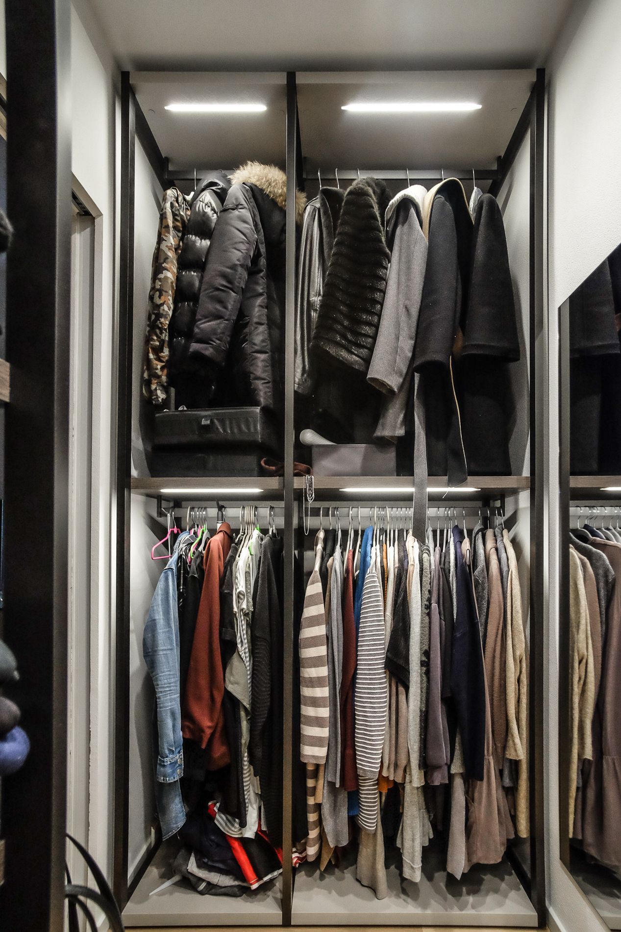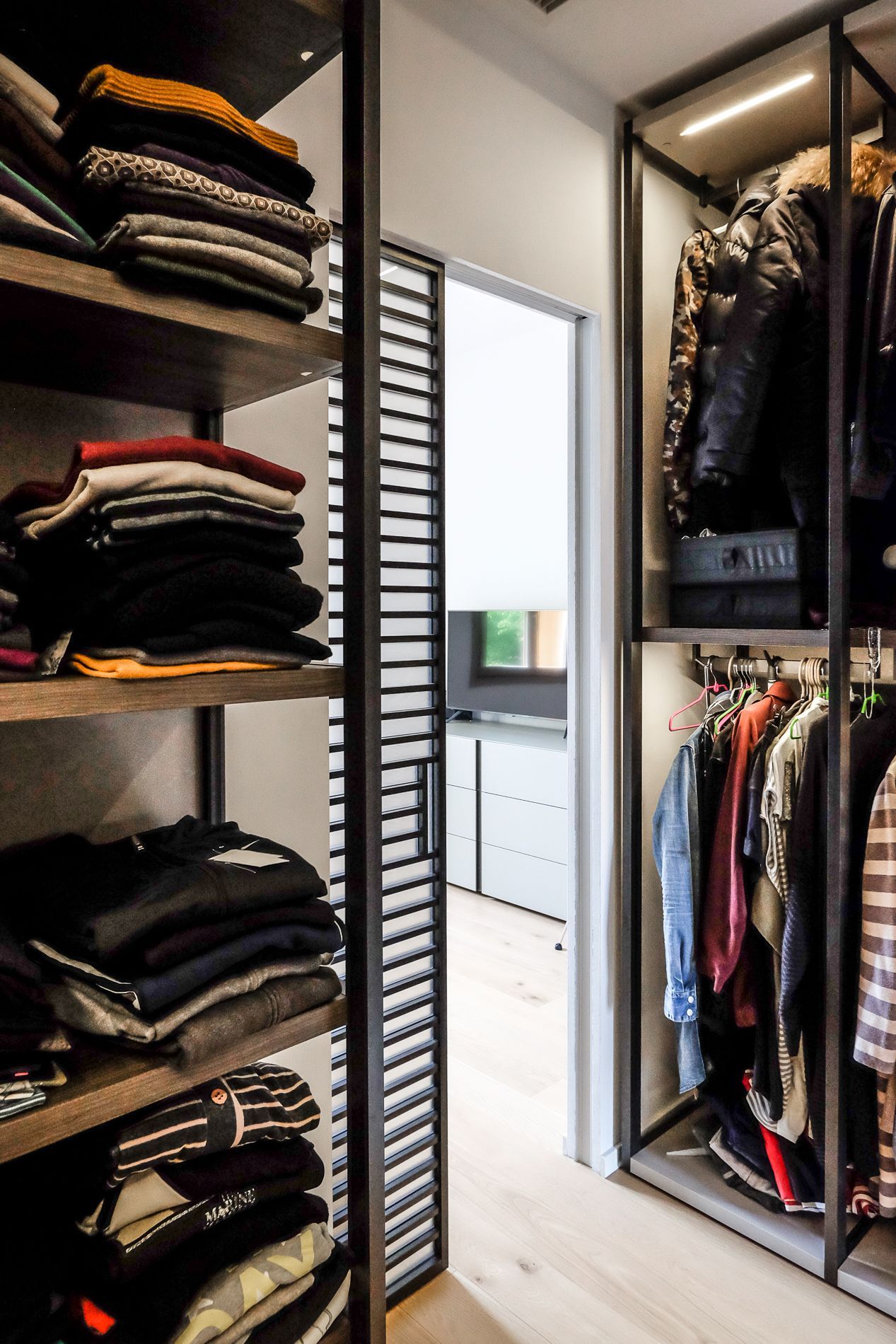In questo progetto abbiamo avuto la possibilità di personalizzare anche la zona notte, con una cabina armadio accessoriata al massimo, con cassettiere, ripiani e luci interne.